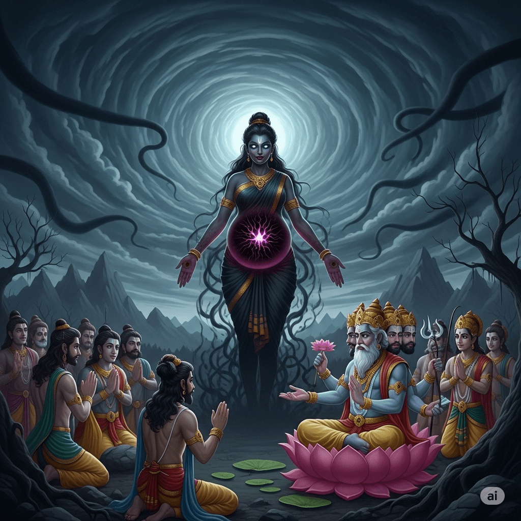 In this chapter, the grandeur of Bhagavān’s leela is revealed through the devotion and insight of the mind-born sons of Brahmā—Sanaka, Sanandana, Sanātana, and Sanatkumāra. Maitreya recounts that the sons, upon witnessing the inauspicious effect of Diti’s prolonged gestation of Hiraṇyākṣa and Hiraṇyakaśipu, were moved by the cosmic imbalance created in the worlds. The very light of the Sun and other luminaries was dimmed, and the protective gods were unable to maintain order. Overcome by concern, they approached Brahmā, who is the cause and guide of the universe, to seek remedy and understanding. Their devotion and anxiety reveal the tender relationship between the cosmic order and divine will, highlighting how the sages’ love for Bhagavān and dharma transcends all fear.
