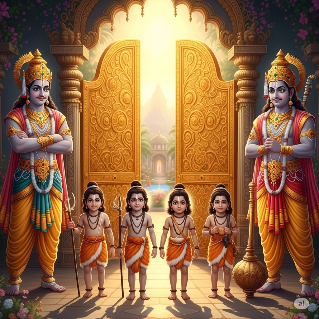 However, not all in Vaikuṇṭha are equally wise or respectful. Jaya and Vijaya, the door-keepers of Hari, act with arrogance and prevent the sages from entering freely, failing to recognize the supremacy of devotion over their own positions. The mind-born sons of Brahmā, although young in form, possess divine insight and spiritual authority. Seeing the misconduct of the gatekeepers, they curse Jaya and Vijaya to be born in the mortal worlds, ensuring that even divine servants are reminded of the supremacy of devotion and the importance of humility before the Lord. This act demonstrates that the protection of dharma and the honor of pure devotees is paramount, even in the abode of the Lord.
