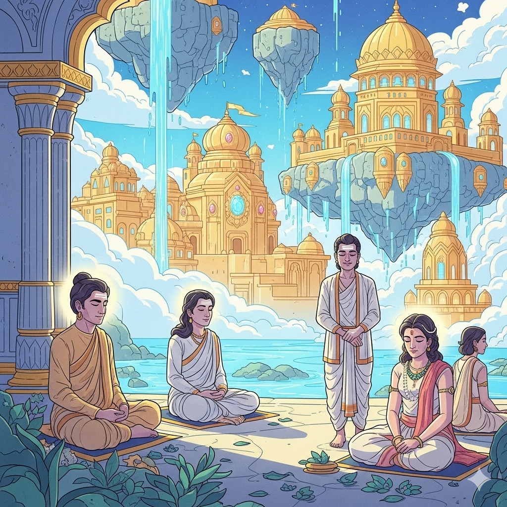 37.) They no longer crave for the wealth and enjoyments of Satyaloka (the highest heaven) and the other spheres falling within My jurisdiction as the Lord of Māyā, nor for the eight kinds of supernatural powers that come to them of their own accord as a sequel to Devotion, nor even for the wealth and splendour of the Lord’s own realm (Vaikuṇṭha), which are full in every respect; yet they do enjoy these in that Abode of the Supreme.