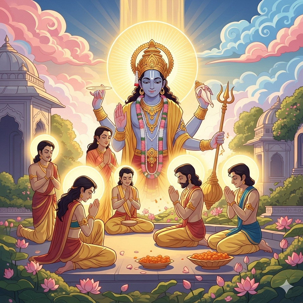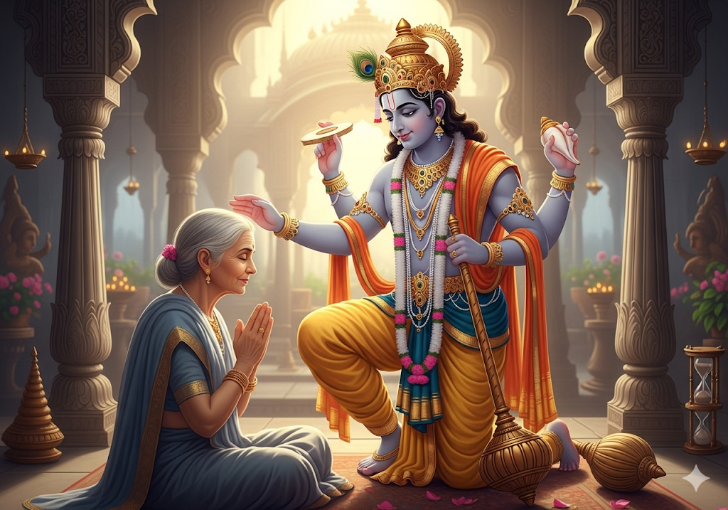 38.) They who depend on Me, nay, to whom I am the only object of love, nay, the very self, the son, the friend, the preceptor, the kith and kin and the chosen deity, are never deprived of these enjoyments in Vaikuṇṭha (which consists of pure Sattva); nor does My weapon in the shape of Time ever devour them.